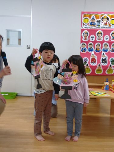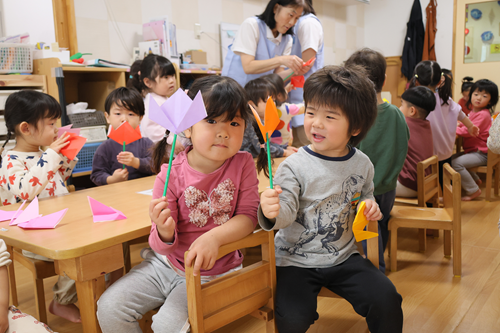 入園式、進級式、クラス懇談会、こどもの日、七夕集会、夏祭り、水遊び、お楽しみ保育、運動会、ハロウィン、親子遠足、勤労感謝の日(地域交流)、クリスマス会、生活発表会、節分集会、ひな祭り、お別れ遠足、卒園式 など