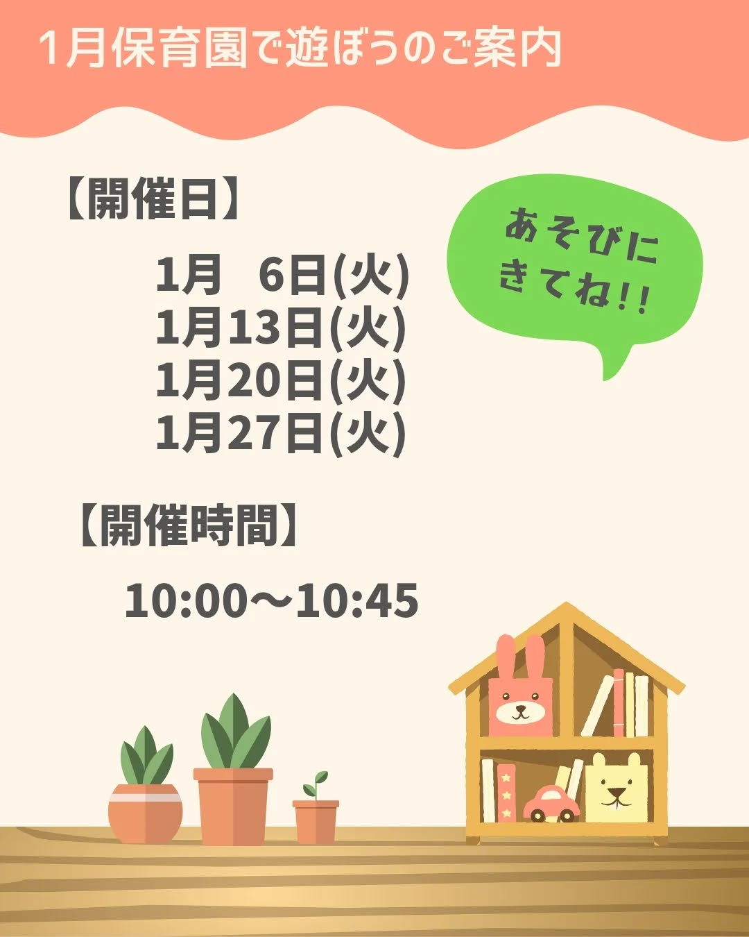 アスク府中本町保育園では、未就園児のお子さんがいるご家庭向けに、「保育園で遊ぼう」を開催しています❗