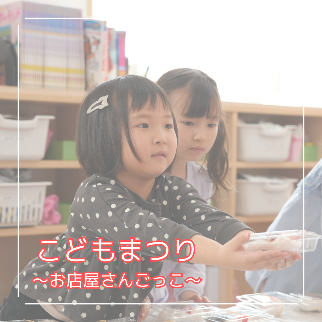 入園式、進級式、クラス懇談会、こどもの日、七夕集会、夏祭り、水遊び、お楽しみ保育、運動会、ハロウィン、親子遠足、勤労感謝の日(地域交流)、クリスマス会、生活発表会、節分集会、ひな祭り、お別れ遠足、卒園式 など