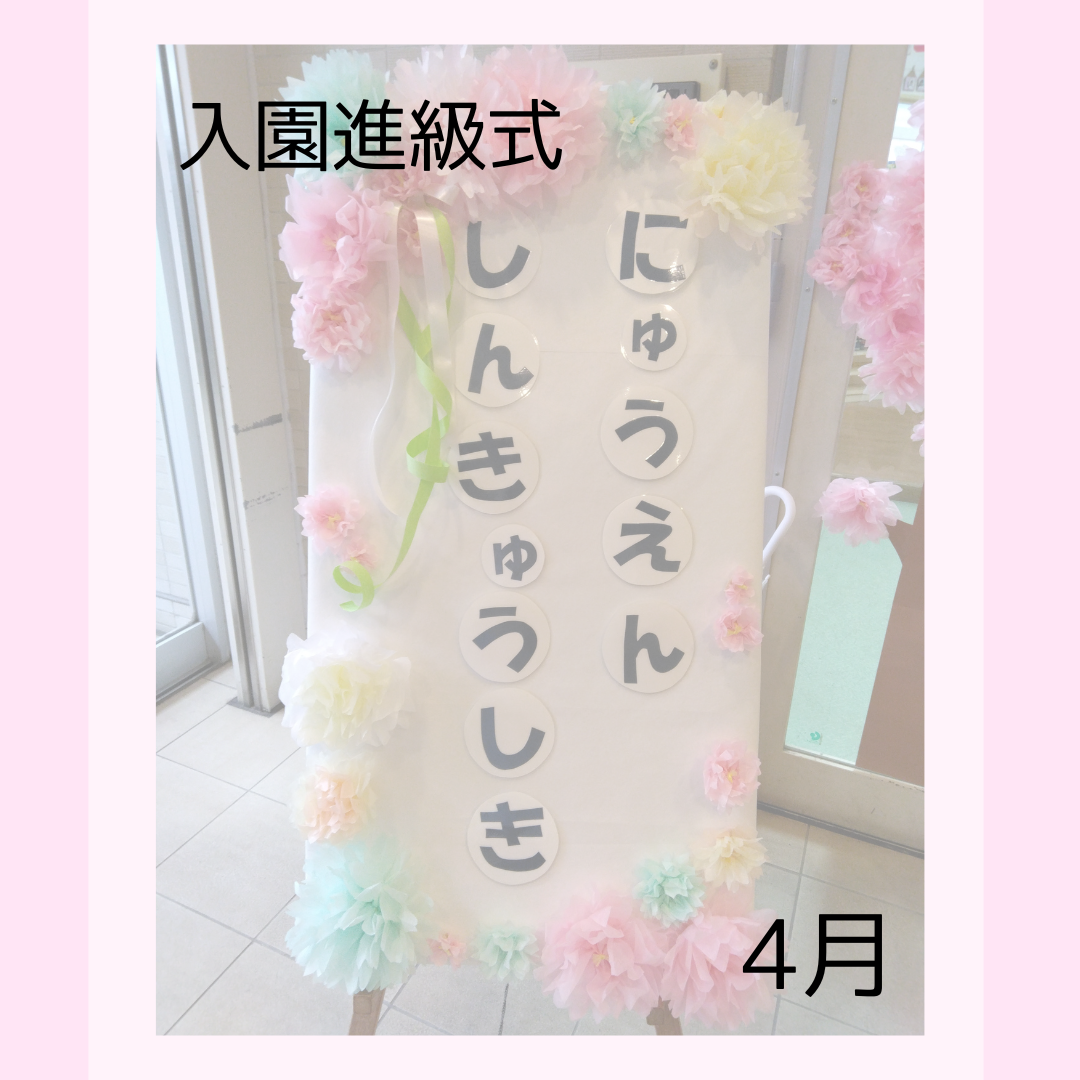 入園式、進級式、クラス懇談会、こどもの日、七夕集会、夏祭り、水遊び、お楽しみ保育、運動会、ハロウィン、親子遠足、勤労感謝の日(地域交流)、クリスマス会、生活発表会、節分集会、ひな祭り、お別れ遠足、卒園式 など