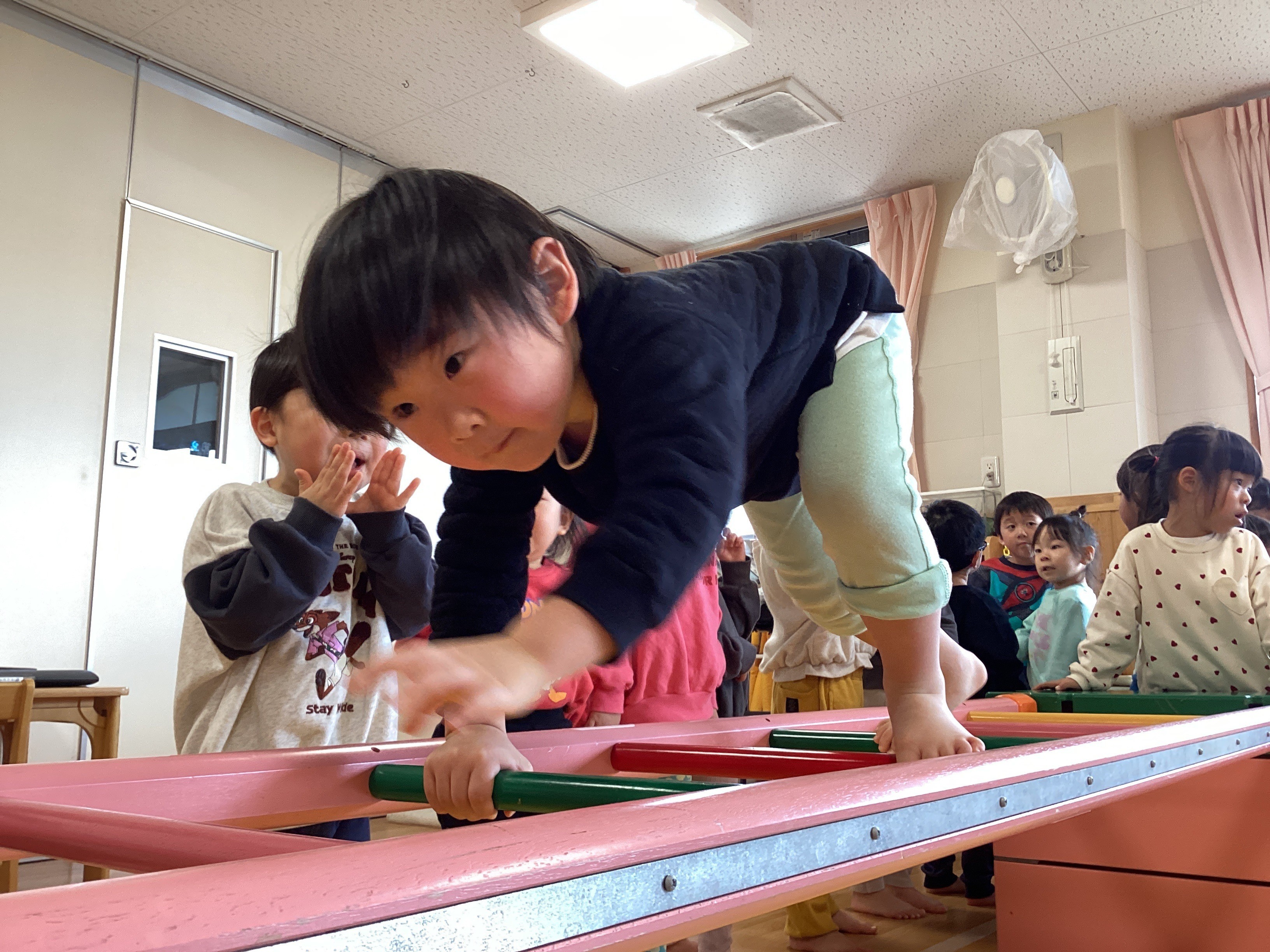 入園式、進級式、クラス懇談会、こどもの日、七夕集会、夏祭り、水遊び、お楽しみ保育、運動会、ハロウィン、親子遠足、勤労感謝の日(地域交流)、クリスマス会、生活発表会、節分集会、ひな祭り、お別れ遠足、卒園式 など