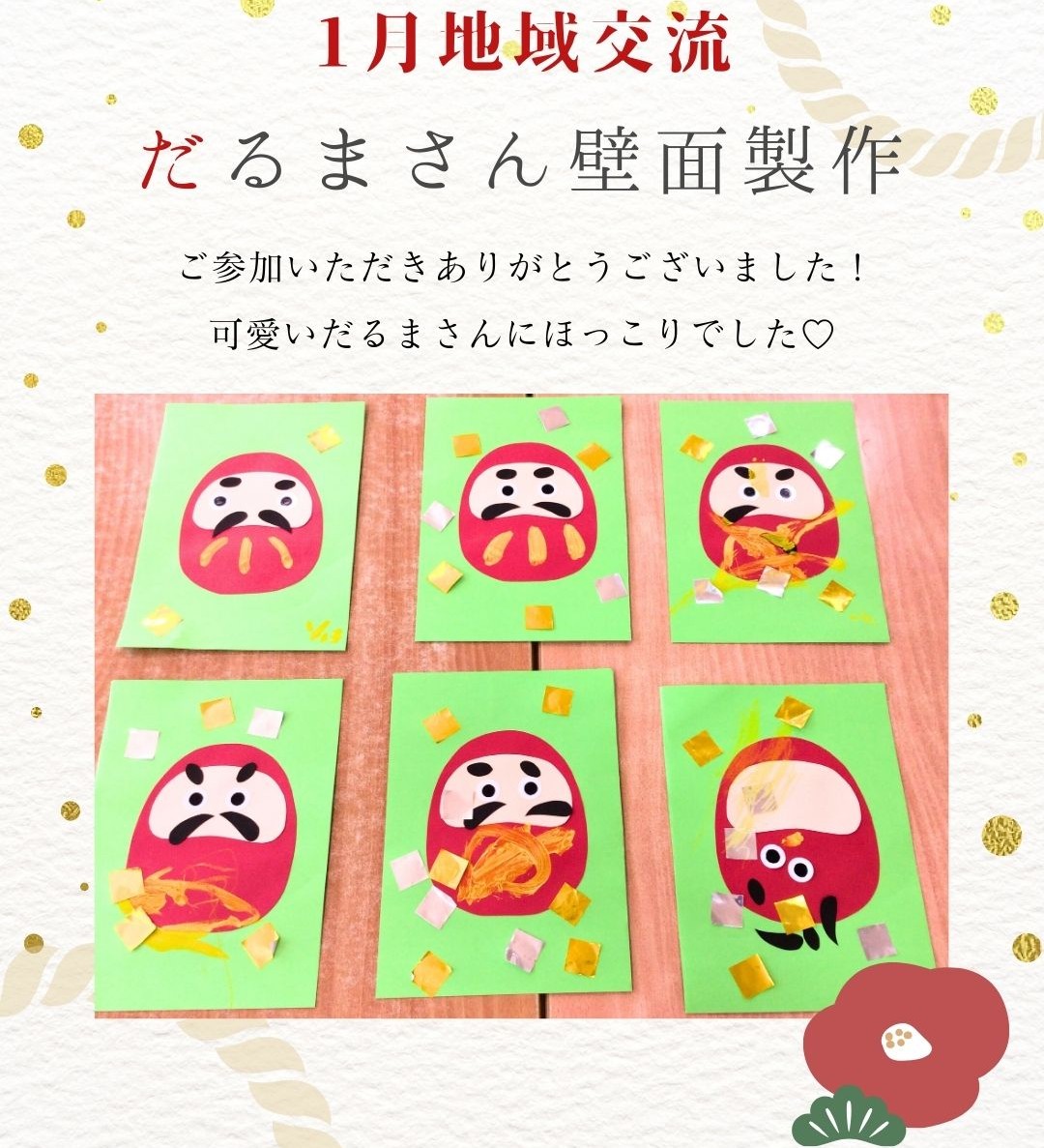 入園式、進級式、クラス懇談会、こどもの日、七夕集会、夏祭り、水遊び、お楽しみ保育、運動会、ハロウィン、親子遠足、勤労感謝の日(地域交流)、クリスマス会、生活発表会、節分集会、ひな祭り、お別れ遠足、卒園式 など
